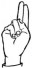 На ћирилици написано ВАСИЛИЈЕ ЛУДОШКИ састоји се из 15 слова [?]. Исписано ћириличном једноручном азбуком за глувонеме:
